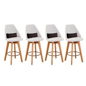 Kit 04 Banquetas Alta Maya Giratória Com Encosto Gourmet Linho Bege E Almofada Corino Marrom - Gat Magazine Banqueta Maya Giratória - GAT MAGAZINE A Banqueta Maya possui assento e pés em madeira eucalipto com sistema giratório! Os pés contam com um reforço que proporciona um suporte de peso de até 120 Kgs.O assento é revestido com espuma D-23. Além de bonita e charmosa, vai trazer para seu ambiente elegância e proporcionará conforto para sua família e amigos nos momentos de lazer.