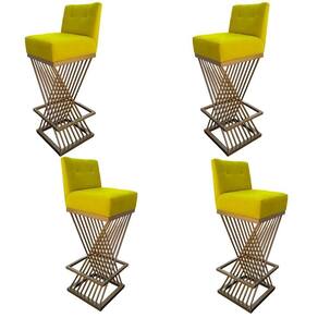 Kit 04 Banquetas Luma Base De Ferro Sued Amarelo D`classe Decor