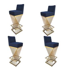 Kit 04 Banquetas Luma Base De Ferro Sued Azul Marinho D`classe Decor