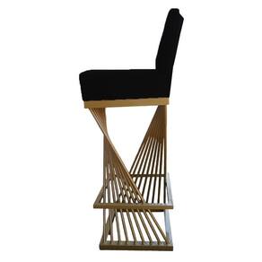 Contando com um design inovador nossa Banqueta possui um diferencial no desenho de sua Base de ferro, além de assento e encosto estofados.