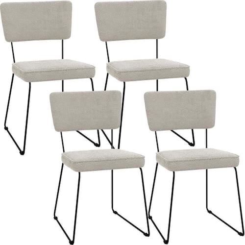 O espetáculo que é o KIt 04 Cadeiras Decorativas Estofada Para Sala De Jantar Base Em Aço Allana L02 Bouclê Creme - Lyam Decor vem para agregar ainda mais valor na decoração da sua casa. Sua estrutura em aço remete-nos ao estilo industrial que surgiu em Nova York no século XX, já o assento e encosto estofados trazem equilíbrio e conforto criando a combinação perfeita para o ambiente. Cabe mencionar também o revestimento em bouclê que possui textura incrível e acabamento impecável.
