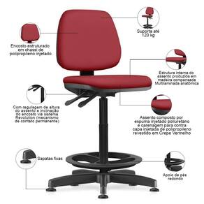 Material do estofamento: Espuma ível de Poliuretano injetado | OriginState: PR | Model: Work | ColorFamily: Vermelho | Formato de venda: Kit com 4 unidades | SizeDescription: Altura: 63,5 cm x Largura: 98 cm x Profundidade: 64 cm | Modelo: Work | SupplierSimpleName: Kit 04 Cadeiras Caixa Alta Giratória Estofada Work F02 Crepe Vermelho - Lyam Decor | ColorSimple: Vermelho | ProductLength: 64 cm | Tipo de cadeira de escritório: Caixa Alta | OriginCountry: | Requer montagem: Sim | Com aro para pés: Sim | Modelo detalhado: Work Caixa Alta | Com apoio de braços: Não | Com rodas: Sim | Cor: PretoVermelho | ProductContents: 04 Cadeiras | Color: Vermelho | ColorSupplier: PretoVermelho | ProductWarranty: 90 dias após o do produto | ProductWidth: 98 cm | ProductHeight: 63,5 cm | Material: Espuma ível de Poliuretano injetado, Tubo Aço Carbono, Polipropileno | ProductWeight: 40 kg | ProductInstructions: Produto para uso em ambiente interno, nao devendo ficar exposto ao sol, calor e umidade excessivos.