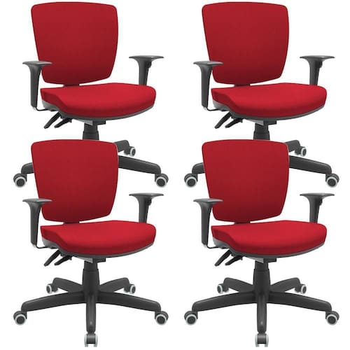 Kit 04 Cadeiras De Escritório Executiva Giratória Preto Baixa Flexi P03 Poliéster Vermelho - Lyam