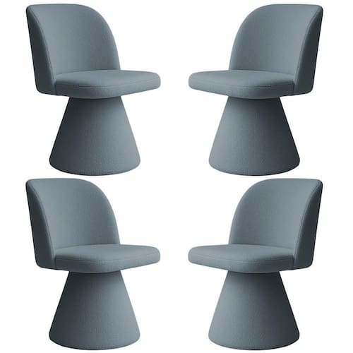 Kit 04 Cadeiras De Jantar Base Fixa Liz Bouclé Azul Claro - Nexta Casa Cadeira de Jantar Liz Estilo e Sofisticação em uma só peça. A escolha certa para quem valoriza bom gosto e qualidade!Descrição do Produto Cadeira perfeita para a sua mesa de jantar, a Cadeira Liz conta com tudo o que é preciso para acomodar bem, desde a estrutura resistente em madeira até o estofamento. Seu design único com curvas elegantes e acabamento de alto padrão valoriza seu espaço, combinando estilo contemporâneo com um toque de luxo. Essa peça foi desenvolvida para ser uma peça funcional, e ao mesmo tempo, uma obra de arte. Daí é só chamar a pessoa que você mais ama para curtir um prato preparado com carinho e um lar-style todo renovado! Características Técnicas Estrutura: Madeira reflorestada de eucalipto tratada, com partes em MDF e OSB robustez e sustentabilidade. Assento: Espuma D-28 + Fibra chapa conforto firme e duradouro. Encosto: Espuma D-23 + Fibra chapa suporte ergonômico ideal. Revestimento: 100% Poliéster visual elegante e toque suave. Base Fixa: Madeira revestida. Pés: Sapatas plásticas. Peso Suportado: Até 120 kg sem impacto. Medidas Altura Total: 80 cm Largura: 56 cm Profundidade: 62 cm Peso: 12 kg (cada) Altura do Encosto: 37 cm Altura do Assento ao Chão: 48 cm Largura do Assento: 56 cm Profundidade do Assento: 50 cm Altura da Base: 40 cm Diferenciais Design moderno sofisticação que se adapta a qualquer ambiente. Acabamento com costura rebatida maior resistência e estética refinada. Revestimento poliéster conforto e visual acolhedor. Estrutura em madeira reflorestada qualidade e responsabilidade ambiental. Quantidade de Volumes: 4. Não necessita de montagem pronta para uso imediato! Cuidados Utilizar um pano levemente umedecido com água, seguido de pano seco. Evitar exposição ao sol para preservar a cor vibrante do tecido. Não sentar nos braços ou encosto do produto. Não usar produtos abrasivos ou escovas. Garantia 3 meses contra de fabricação. Observações Imagens ilustrativas; tonalidade pode variar devido à configuração de cores da tela. Objetos de decoração não inclusos. Produtos enviados embalados com , reduzindo riscos de danos. Verificar as condições da embalagem na e reportar danos no . até a porta de entrada ou portaria. Confirme as dimensões e compatibilidade do de instalação. Não nos responsabilizamos por montagem, desmontagem, instalação ou por escadas/elevadores. Marca: Não Informado
