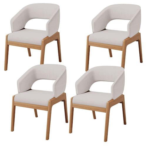 Kit 04 Cadeiras de Jantar e Estar Living Estofada Lince L02 Linho Bege - Lyam Decor