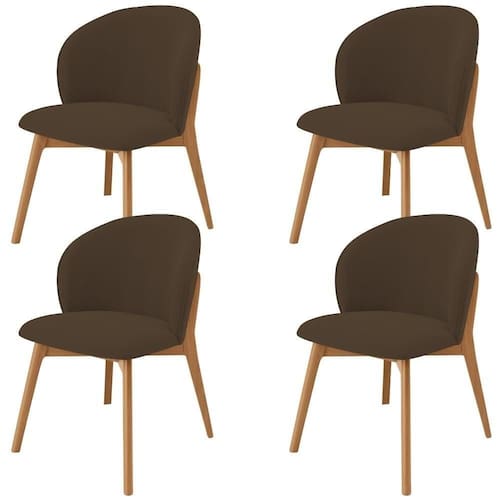 O Kit 04 Cadeiras de Jantar e Estar Living Estofada Mia, da Lyam Decor, é a combinação perfeita de design orgânico, conforto e modernidade, expressos em cada detalhe, desde as linhas curvas do assento e encosto até os pés de madeira maciça envernizada. Em outras palavras, essa cadeira estofada é ideal para complementar sua sala de jantar ou estar com elegância e estilo. Além disso, a tapeçaria feita com espuma D-26 oferece um conforto excepcional, permitindo que você desfrute de momentos prazerosos durante suas refeições ou conversas com amigos e familiares. Para completar, essa cadeira de jantar moderna é perfeita para quem busca uma sala de jantar contemporânea, já que seu design único traz uma sensação de beleza e sofisticação ao ambiente e, ainda, harmoniza facilmente com diversos estilos de mesa de jantar. Ah, mas além da sala de jantar, você também pode aproveitá-la como assento extra na sala de estar, recepção, escritório e até mesmo no quarto, ou seja, uma cadeira de madeira versátil como você sempre quis.