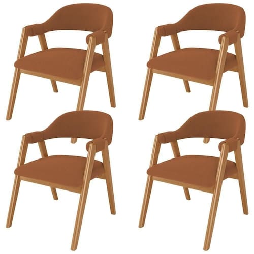 O Kit 04 Cadeiras de Jantar e Estar Living Estofada Nadja, das Lyam Decor, é a escolha perfeita para criar uma sala de jantar moderna e acolhedora. Com seu design curvo e pés de madeira maciça envernizada, essa cadeira estofada traz elegância e sofisticação ao ambiente. Além disso, é tapeçada com espuma d-26, o que proporciona um conforto excepcional, permitindo que você desfrute de momentos incríveis à mesa. Já o design orgânico combina beleza e modernidade, tornando-a uma peça única, enquanto os braços adicionam um toque extra de conforto e estilo. A Cadeira Nadja é o equilíbrio perfeito entre funcionalidade e design, uma vez que pode facilmente ser utilizada em diversos ambientes, como espaços comerciais, recepção de hotel e eventos, até como poltrona para sala de estar. Adicione esse elemento indispensável à sua decoração e transforme qualquer ambiente em um lugar especial. Não perca a oportunidade de adquirir essa cadeira de jantar que vai encantar a todos.