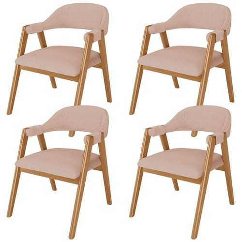 O Kit 04 Cadeiras de Jantar e Estar Living Estofada Nadja, das Lyam Decor, é a escolha perfeita para criar uma sala de jantar moderna e acolhedora. Com seu design curvo e pés de madeira maciça envernizada, essa cadeira estofada traz elegância e sofisticação ao ambiente. Além disso, é tapeçada com espuma d-26, o que proporciona um conforto excepcional, permitindo que você desfrute de momentos incríveis à mesa. Já o design orgânico combina beleza e modernidade, tornando-a uma peça única, enquanto os braços adicionam um toque extra de conforto e estilo. A Cadeira Nadja é o equilíbrio perfeito entre funcionalidade e design, uma vez que pode facilmente ser utilizada em diversos ambientes, como espaços comerciais, recepção de hotel e eventos, até como poltrona para sala de estar. Adicione esse elemento indispensável à sua decoração e transforme qualquer ambiente em um lugar especial. Não perca a oportunidade de adquirir essa cadeira de jantar que vai encantar a todos.