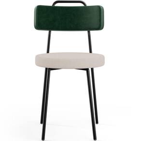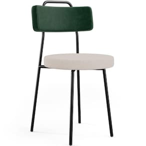 Revestimento do encosto em Facto na cor Verde Musgo e do assento em Linho na cor Bege, com acabamento semi brilho.