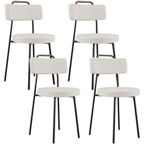 Amplamente moderna, dispondo de muito realce e design singular, o Kit 04 Cadeiras Decorativas Estofada Para Sala De Jantar Barcelona L02 Bouclê Cru - Lyam Decor vem com a personalidade e elegância que sua decoração merece! Estruturada em aço carbono, contrasta lindamente com o encosto e assento estofados, cabe mencionar ainda seu revestimento em Couríssimo, é confeccionada por materiais de excelente qualidade, extremamente resistentes e aconchegantes.