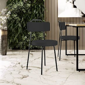 Amplamente moderna, dispondo de muito realce e design singular, o Kit 04 Cadeiras Decorativas Estofadas Para Sala De Jantar Barcelona L02 Facto Preto - Lyam Decor vem com a personalidade e elegância que sua decoração merece! Estruturada em aço carbono, contrasta lindamente com o encosto e assento estofados, cabe mencionar ainda seu revestimento em Couríssimo, é confeccionada por materiais de excelente qualidade, extremamente resistentes e aconchegantes.
