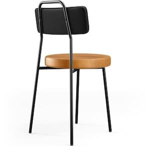 Revestimento do encosto em Couríssimo na cor Preto e do assento em Couríssimo na cor Whisky, com acabamento semi brilho.