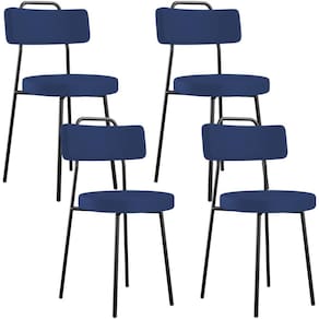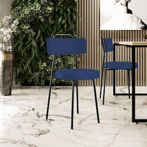 Amplamente moderna, dispondo de muito realce e design singular, o Kit 04 Cadeiras Decorativas Estofadas Para Sala De Jantar Barcelona L02 Facto Azul Marinho - Lyam Decor vem com a personalidade e elegância que sua decoração merece! Estruturada em aço carbono, contrasta lindamente com o encosto e assento estofados, cabe mencionar ainda seu revestimento em Couríssimo, é confeccionada por materiais de excelente qualidade, extremamente resistentes e aconchegantes.