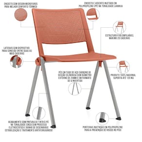 Material do encosto e assento injetado em Polipropileno (PP) na tonalidade Laranja.