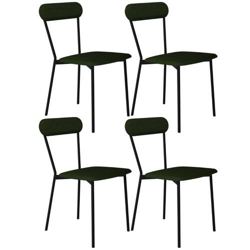 Kit 04 Cadeiras Estofada Para Sala de Jantar Liora Preto C01 Linho Verde Musgo - Lyam Decor