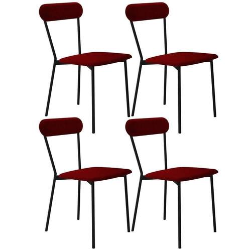 Fabricante: Lyam Decor | Material do estofamento: Espuma D-22 e D-28 | ProductHeight: 243 cm | É dobrável: Não | OriginCountry: Brasil | Color: Vermelho | ProductWidth: 43 cm | ProductWarranty: 90 dias após o recebimento do produto | É empilhável: Não | ColorSimple: Vermelho | ColorSupplier: Vermelho Vinho | Cor do estofamento: Vermelho vinho | ProductInstructions: Produto para uso em ambiente interno, nao devendo ficar exposto ao sol, calor e umidade excessivos. | ProductWeight: 5,5 kg | Material: Estrutura em Aço e MDP, Revestimento em Veludo e espuma | MaterialFamily: Aço, MDP, Veludo e espuma | Model: Liora | Desenho do tecido: Liso | Cor da estrutura da cadeira: Preto | Cor do assento: Vermelho vinho | É cadeira de balanço: Não | Profundidade da cadeira: 53 cm | Profundidade do assento: 53 cm | OriginState: PR | ProductContents: 04 Cadeiras | Cor: Vermelho vinho | Altura da cadeira: 243 cm | SizeDescription: Altura: 243 cm x Largura: 43 cm x Profundidade: 53 cm | SupplierSimpleName: Kit 04 Cadeiras Estofada Para Sala de Jantar Liora Preto C01 Veludo Vermelho Vinho - Lyam Decor | ProductLength: 53 cm | Largura do assento: 43 cm | Firmeza: Firme | Largura da cadeira: 43 cm | Espessura do assento: na | ColorFamily: Vermelho | Altura do assento a partir do solo: 49 cm | Peso máximo suportado: 120 kg | Tempo de montagem: na | Requer montagem: Não