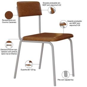 ColorSupplier: Caramelo | Cor do estofamento: Caramelo | Tempo de montagem: na | Espessura do assento: na | Fabricante: Lyam Decor | SizeDescription: Altura: 243 cm x Largura: 47,5 cm x Profundidade: 50,5 cm | SupplierSimpleName: Kit 04 Cadeiras Estofada Para Sala de Jantar Sense Branco C01 Courino Caramelo - Lyam Decor | ProductLength: 50,5 cm | ProductWidth: 47,5 cm | ProductWarranty: 90 dias após o do produto | ProductHeight: 243 cm | ProductInstructions: Produto para uso em ambiente interno, nao devendo ficar exposto ao sol, calor e umidade excessivos. | ProductWeight: 21,6 Kg | Desenho do tecido: Liso | Cor da estrutura da cadeira: Branco | É cadeira de balanço: Não | Material do estofamento: Espuma D-22 e D-42 | Altura da cadeira: 81 cm | Profundidade da cadeira: 50,5 cm | Profundidade do assento: 40 cm | Largura do assento: 47,5 cm | Firmeza: Firme | Largura da cadeira: 47,5 cm | Altura do assento a partir do solo: 47,5 cm | É empilhável: Não | Requer montagem: Não | Model: Sense | ColorSimple: Caramelo | Cor: Caramelo | OriginState: PR | OriginCountry: | Color: Caramelo | Material: Estrutura em Aço, MDP, Revestimento em Couro sintético e espuma | ProductContents: 04 Cadeiras | É dobrável: Não | Cor do assento: Caramelo | MaterialFamily: Aço, MDP, Couro sintético e espuma | ColorFamily: Caramelo | Peso máximo suportado: 120 kg