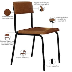 Cor: Caramelo | ColorFamily: Caramelo | Fabricante: Lyam Decor | MaterialFamily: Aço, MDP e Couro sintético | Model: Sense | ProductContents: 04 Cadeiras | ProductWeight: 21,6 Kg | Desenho do tecido: Liso | Cor da estrutura da cadeira: Preto | Profundidade da cadeira: 51 cm | Tempo de montagem: na | Material: Estrutura em Aço e MDP, Revestimento em Couro sintético | SupplierSimpleName: Kit 04 Cadeiras Estofada Para Sala de Jantar Sense Preto C01 Courino Caramelo - Lyam Decor | ProductLength: 51 cm | ProductInstructions: Produto para uso em ambiente interno, nao devendo ficar exposto ao sol, calor e umidade excessivos. | ProductHeight: 243 cm | ProductWarranty: 90 dias após o recebimento do produto | É cadeira de balanço: Não | Material do estofamento: Aço, MDP e Couro sintético | Color: Caramelo | ColorSimple: Caramelo | ColorSupplier: Caramelo | Cor do estofamento: Caramelo | OriginCountry: Brasil | OriginState: PR | SizeDescription: Altura: 243 cm x Largura: 48 cm x Profundidade: 51 cm | ProductWidth: 48 cm | Cor do assento: Caramelo | Profundidade do assento: 40 cm | Largura do assento: NA | Altura da cadeira: 81 cm | Largura da cadeira: 47,5 cm | Firmeza: Firme | Altura do assento a partir do solo: 47,5 cm | Peso máximo suportado: 120 kg | Espessura do assento: na | É dobrável: Não | É empilhável: Não | Requer montagem: Não