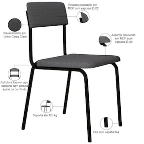 Color: Cinza | ColorSimple: Cinza | Model: Sense | Firmeza: Firme | Fabricante: Lyam Decor | Cor: Cinza claro | ColorSupplier: Cinza Claro | MaterialFamily: Aço, MDP e Linho | ProductWeight: 21,6 Kg | Desenho do tecido: Liso | É cadeira de balanço: Não | Profundidade do assento: 40 cm | Profundidade da cadeira: 51 cm | É dobrável: Não | Largura da cadeira: 47,5 cm | Tempo de montagem: na | ColorFamily: Cinza | Cor do estofamento: Cinza claro | Material: Estrutura em Aço e MDP, Revestimento em Linho | OriginCountry: Brasil | OriginState: PR | ProductContents: 04 Cadeiras | SizeDescription: Altura: 243 cm x Largura: 48 cm x Profundidade: 51 cm | SupplierSimpleName: Kit 04 Cadeiras Estofada Para Sala de Jantar Sense Preto C01 Linho Cinza Claro - Lyam Decor | ProductLength: 51 cm | ProductHeight: 243 cm | ProductWidth: 48 cm | ProductWarranty: 90 dias após o recebimento do produto | ProductInstructions: Produto para uso em ambiente interno, nao devendo ficar exposto ao sol, calor e umidade excessivos. | Cor da estrutura da cadeira: Preto | Cor do assento: Cinza claro | Altura da cadeira: 81 cm | Material do estofamento: Aço, MDP e Linho | Peso máximo suportado: 120 kg | Espessura do assento: na | Largura do assento: NA | Altura do assento a partir do solo: 47,5 cm | É empilhável: Não | Requer montagem: Não