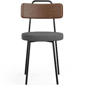 Revestimento do encosto em Couríssimo na cor Marrom e do assento em Linho na cor Cinza Escuro, com acabamento semi brilho.