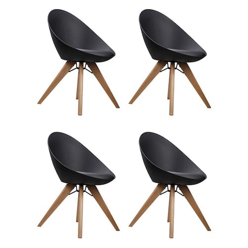 Se você tem medo de escolher móveis pela internet, sem saber se vai ou não combinar com o restante da mobília. Calma, que iremos te ajudar. Você sabia que acabou a regra de ter que combinar milimetricamente todos os móveis da casa? Hoje em dia você pode criar um ambiente divertido, afinal quanto mais distinta for a peça, mais originalidade você agregará ao seu ambiente. Isso é maravilhoso não é!? A Cadeira Giratória Elen no tom Preto é uma peça que trará toda flexibilidade, conforto e comodidade que você merece. Possui as seguintes categorias: Base giratória em madeira garantindo assim maior resistência ao produto. Revestimento do assento e encosto em ( PP) Polipropileno um material sintético que oferece, beleza e durabilidade, e por fim, com almofada fixa em (PU) Poliuretano, um material durável que impacta diretamente na qualidade da peça. Só aqui você alcançará a decoração perfeita! A cadeira Elen é para quem não tem medo de ousar! Garanta seu kit 04 Cadeiras.