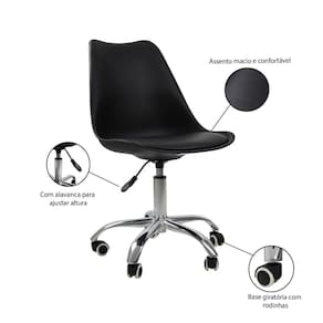 A Cadeira Saarinen com Base Office é ideal para ambientes como; escritório, mesas de estudos, home office e muito mais. Sua concha possuí curvas adequadas aos padrões ortopédicos possibilitando conforto durante várias horas. Com altíssima qualidade, nossas Cadeiras Saarinen foram desenvolvidas com formato ergonômico para melhor adaptação e experiência de nossos consumidores. Ela é versátil, com a altura do Assento ajustável. Isso permite que você a regule de acordo com ás suas necessidades, o que garante um maior conforto. A cadeira conta com uma base giratória com rodinhas. Isso facilita consideravelmente a sua navegabilidade na mesa de trabalho. Além disso, a cadeira é muito bonita e elegante, combinando com qualquer escritório. É uma ótima aquisição que deixará a sua sala de trabalho com uma aparência ainda mais respeitável, além de garantir maior conforto para você. Especificações: Altura Ajustável: Entre 81 cm e 93,5 cm. Comprimento: 58 cm. Largura: 48,5 cm.