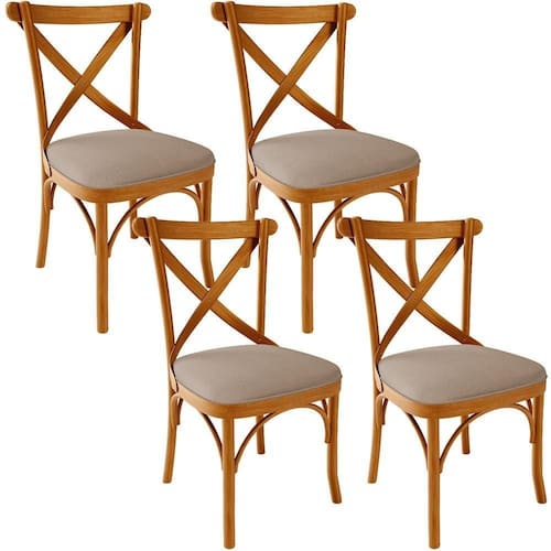 Inspirada no elegante mobiliário parisiense do século 19 e pensada para proporcionar máximo conforto, a Cadeira Ávila combina estilo e funcionalidade de uma maneira única. Estruturada em madeira maciça, possui detalhes curvilíneos que trazem suavidade e delicadeza a peça, seu acabamento envernizado a torna um mobiliário de destaque e trás durabilidade e confiança ao seu uso. Possui assento estofado, que proporciona ao seu usuário a sensação de comodidade ideal e ainda adiciona classe a qualquer ambiente. Seu design a torna uma peça versátil que abre portas a sua imaginação pois pode ser disposta em salas de jantar, estar, e espera, quartos, halls de entrada e cozinhas. Expresse seu bom gosto, e adquira já essa obra-prima da sofisticação! Dimensões do Produto (L x A x P) 49,5 x 86,5 x 55 cm Medidas Internas: Largura do assento: 44,5 cm Profundidade do assento: 43 cm Altura do encosto ao assento: 40 cm Largura total do encosto: 49,5 cm Altura do chão ao assento: 50 cm Largura do encosto: 38 cm Características: Estrutura em Madeira Maciça, com acabamento envernizado. Assento estofado com espuma D-23. Revestimento em Linho na cor Bege Escuro, de ótima qualidade. Peso suportado de até 150 kg. - Produto entregue montado. - Por se tratar de estofado as medidas podem ter uma pequena variação de até 3 cm. - A tonalidade do produto real poderá ter ligeira variação devido o lote de tecidos. - A limpeza deve ser feita com pano levemente umedecido em água limpa, sem esfregar, não utilizar produtos abrasivos, desengordurantes, álcool ou solvente. Observações importantes: - Produto para uso residencial em ambiente interno, não devendo ficar exposto diretamente ao sol, calor e umidade excessivos. - Pode haver alguma diferença de tonalidade entre a imagem e o produto real, por conta do tratamento de imagens e a calibração de cores do seu monitor. - As imagens são meramente ilustrativas, não acompanham objetos de decoração e eletrônicos. - Ao receber a mercadoria, o cliente deve verificar as condições da embalagem, caso haja alguma não assine o de . - Montagem, desmontagem e outras instalações serão de responsabilidade do cliente. Não nos responsabilizamos, no ato da , por subir escadas/elevadores ou pelo por guincho em apartamentos. Eventuais despesas são de responsabilidade do comprador. - Confira as dimensões do produto e certifique-se de que passará normalmente por supostos elevadores, portas, escadas e/ou corredores de sua residência. Color: Bege | ProductInstructions: Produto para uso em ambiente interno, nao devendo ficar exposto ao sol, calor e umidade excessivos. | SizeDescription: Altura: 86 cm Largura: 49 cm Profundidade: 55 cm | ColorSupplier: Bege | Model: Ávila | ProductHeight: 86 cm | ColorFamily: Bege | SupplierSimpleName: Kit 04 Cadeiras Para Sala de Jantar e Estar Living Estofada Ávila L02 Linho Bege Escuro - Lyam | ColorSimple: Bege | ProductWidth: 49 cm | Material: Madeira Maciça | MaterialFamily: Madeira | ProductWarranty: 90 dias após o do produto | OriginCountry: | OriginState: PR | ProductContents: 04 Cadeiras | ProductLength: 55 cm | ProductWeight: 32 kg