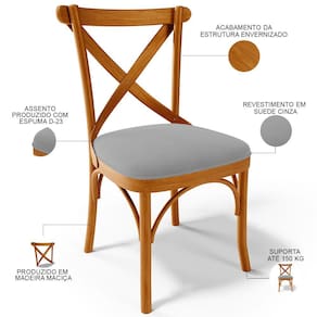 Inspirada no elegante mobiliário parisiense do século 19 e pensada para proporcionar máximo conforto, a Cadeira Ávila combina estilo e funcionalidade de uma maneira única. Estruturada em madeira maciça, possui detalhes curvilíneos que trazem suavidade e delicadeza a peça, seu acabamento envernizado a torna um mobiliário de destaque e trás durabilidade e confiança ao seu uso. Possui assento estofado, que proporciona ao seu usuário a sensação de comodidade ideal e ainda adiciona classe a qualquer ambiente. Seu design a torna uma peça versátil que abre portas a sua imaginação pois pode ser disposta em salas de jantar, estar, e espera, quartos, halls de entrada e cozinhas. Expresse seu bom gosto, e adquira já essa obra-prima da sofisticação!