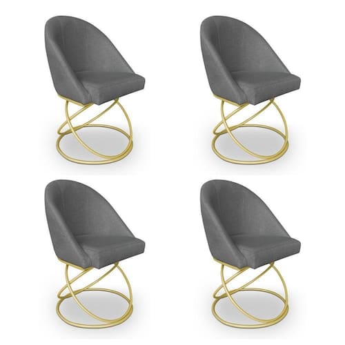A base metálica em dourado confere à cadeira um aspecto industrial moderno, proporcionando um contraste encantador com o tecido em linho. Essa mistura de materiais agrega um ar contemporâneo e luxuoso ao ambiente, além de assegurar estabilidade e durabilidade à peça. O acabamento cuidadoso realça ainda mais a beleza e a qualidade do produto.