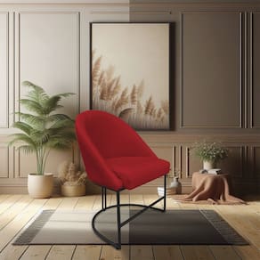 Kit 04 Cadeiras Poltrona de Jantar Bela Suede Base Metálica Industrial Preto - Pallazio - Vermelho