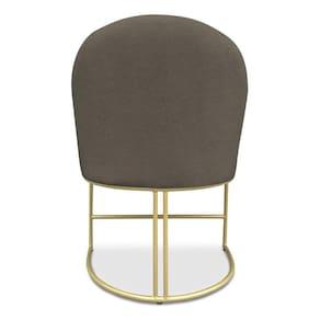 A base metálica em dourado confere à cadeira um aspecto industrial moderno, proporcionando um contraste encantador com o tecido em suede. Essa mistura de materiais agrega um ar contemporâneo e luxuoso ao ambiente, além de assegurar estabilidade e durabilidade à peça. O acabamento cuidadoso realça ainda mais a beleza e a qualidade do produto.