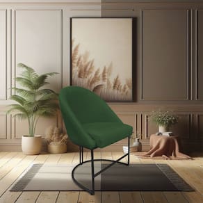 A base metálica em preto confere à cadeira um aspecto industrial moderno, proporcionando um contraste encantador com o tecido em suede. Essa mistura de materiais agrega um ar contemporâneo e luxuoso ao ambiente, além de assegurar estabilidade e durabilidade à peça. O acabamento cuidadoso realça ainda mais a beleza e a qualidade do produto.