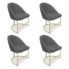 Kit 04 Cadeiras Poltrona de Jantar Bela Veludo Grafite Base Metálica Industrial Dourado - Pallazio