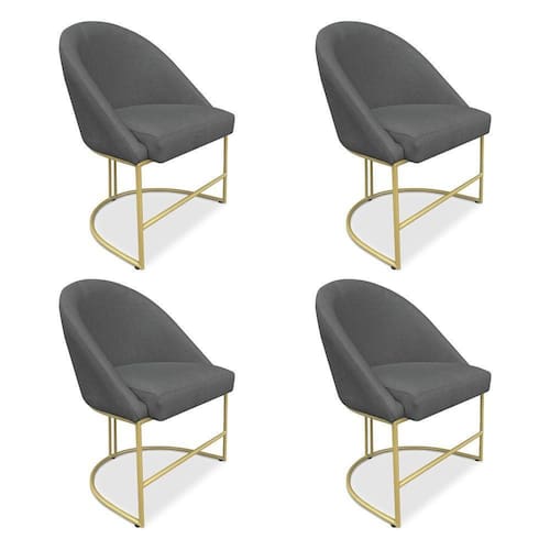 A base metálica em dourado confere à cadeira um aspecto industrial moderno, proporcionando um contraste encantador com o tecido em Veludo. Essa mistura de materiais agrega um ar contemporâneo e luxuoso ao ambiente, além de assegurar estabilidade e durabilidade à peça. O acabamento cuidadoso realça ainda mais a beleza e a qualidade do produto.