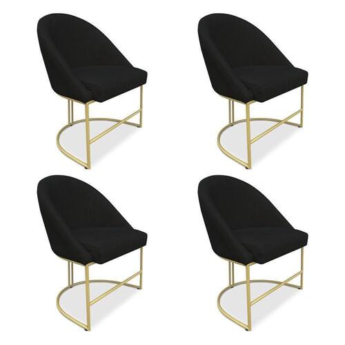 Kit 04 Cadeiras Poltrona De Jantar Bela Veludo Preto Base Metálica Industrial Dourado - Pallazio