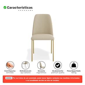 Seu encosto estofado ergonômico oferece apoio ideal para a coluna, tornando cada momento à mesa ainda mais confortável. O assento é revestido em couríssimo, material nobre que agrega charme e praticidade, além de trazer uma sensação agradável ao toque.