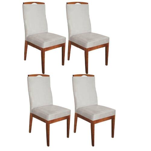 Conjunto 04 Cadeiras Para Sala De Jantar Ricco Estofada Madeira Carvalho Veludo Bege Claro - Ahazzo Móveis Cor Bege