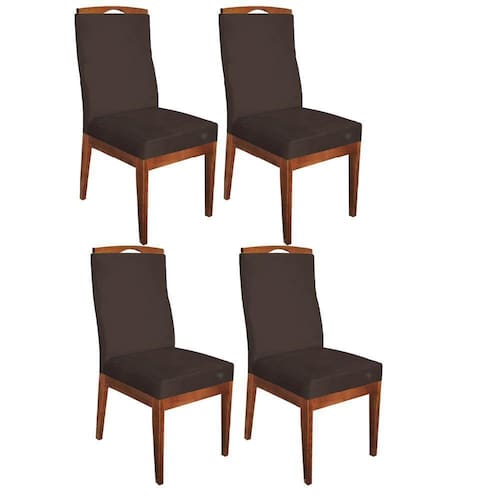 Conjunto 04 Cadeiras Para Sala De Jantar Ricco Estofada Madeira Imbuia Veludo Marrom Escuro - Ahazzo Móveis Cor Marrom