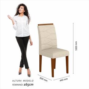 Detalhes Técnicos das Cadeiras -Assento e Encosto Tapeçados, Estofados e Fixos -Peso Suportado da Cadeira: 90 KG -Facilidade da Montagem: Média -Tonalidade da Cadeira: Cinamomo/Suede Bege -Espuma do Assento: D16 -Espuma do Encosto: D14 -Tipo de Pintura: UV Texturizada -Material: Estrutura em MDF / Pés e Espaldar Madeira -Medida da Cadeira: 100CMx44CMx50CM
