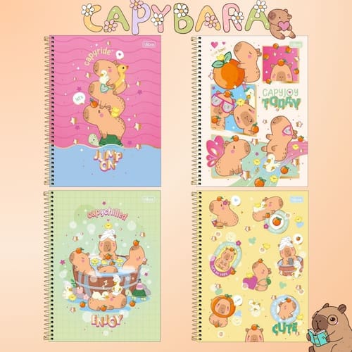 O Caderno Espiral Capa Dura Universitário 1 Matéria Capyclub 80 Folhas possui capa dura com a parte interna decorada, bolsa de papel decorada para guardar trabalhos e anotações e folha com adesivos funcionais. Ideal para o dia a dia na escola ou na faculdade.