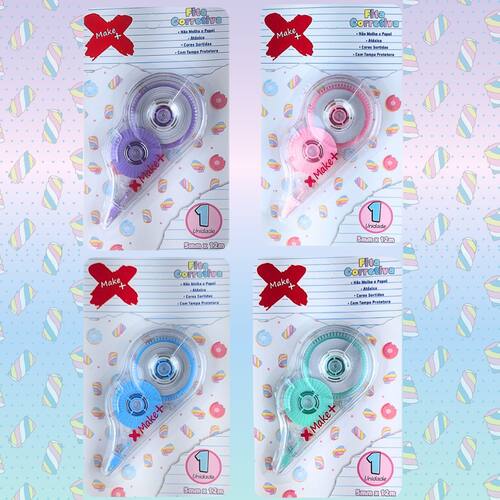 kit 04 Fita Corretiva Candy 5mmx12m Preciso e Compacto