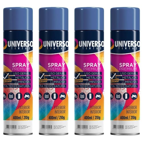 Tinta Spray 400ml Azul Escuro Uso Geral em Aço Ferro Couro Gesso Cerâmica A Tinta Spray 400ml Azul Escuro Uso Geral é a solução prática para renovar superfícies de metal, gesso, couro e cerâmica. Ideal para dar vida nova a bicicletas, móveis, eletrodomésticos e objetos em geral, garantindo um acabamento moderno e duradouro. Com fórmula de alta qualidade, oferece excelente aderência e acabamento Brilhante, além de resistência superior contra desgastes do dia a dia. Sua cobertura uniforme realça os detalhes e proporciona um resultado em poucas camadas. Prática e fácil de aplicar, a tinta spray seca ao toque em apenas 15 minutos, permitindo agilidade nos trabalhos e economia de tempo. O rendimento de até 2 m por demão garante maior aproveitamento do produto e ótimo custo-benefício. Diferenciais: Acabamento Brilhante com ótima aderência Alta durabilidade e resistência em ambientes internos e externos Secagem rápida e aplicação prática com cobertura uniforme Especificações TÉCNICAS: Volume: 400ml Rendimento: até 2 m por demão Superfícies indicadas: metal, gesso, couro e cerâmica Secagem: toque em 15 minutos Acabamento: Brilhante Recomendação: uso de primer para melhor desempenho Itens INCLUSOS: 04 Tintas Spray 400ml Azul Escuro Uso Geral Marca: Não Informado