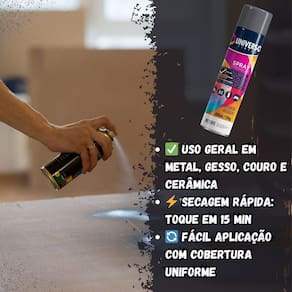 Tinta Spray 400ml Cinza Grafite Uso Geral em Aço Ferro Couro Gesso Cerâmica A Tinta Spray 400ml Cinza Grafite Uso Geral é a solução prática para renovar superfícies de metal, gesso, couro e cerâmica. Ideal para dar vida nova a bicicletas, móveis, eletrodomésticos e objetos em geral, garantindo um acabamento moderno e duradouro. Com fórmula de alta qualidade, oferece excelente aderência e acabamento Brilhante, além de resistência superior contra desgastes do dia a dia. Sua cobertura uniforme realça os detalhes e proporciona um resultado em poucas camadas. Prática e fácil de aplicar, a tinta spray seca ao toque em apenas 15 minutos, permitindo agilidade nos trabalhos e economia de tempo. O rendimento de até 2 m por demão garante maior aproveitamento do produto e ótimo custo-benefício. Diferenciais: Acabamento Brilhante com ótima aderência Alta durabilidade e resistência em ambientes internos e externos Secagem rápida e aplicação prática com cobertura uniforme Especificações TÉCNICAS: Volume: 400ml Rendimento: até 2 m por demão Superfícies indicadas: metal, gesso, couro e cerâmica Secagem: toque em 15 minutos Acabamento: Brilhante Recomendação: uso de primer para melhor desempenho Itens INCLUSOS: 04 Tintas Spray 400ml Cinza Grafite Uso Geral Marca: Não Informado