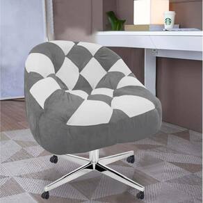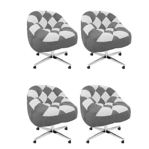 Kit 04 Poltrona Paloma Escritório Sala Giratória Metal Rodízio Suede Cinza E Suede Branco - Dominic Decor