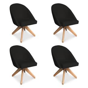 Kit 04 Poltronas Cadeira Giratória Bela Suede Preto Base de Madeira - Pallazio