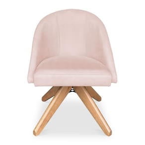 Kit 04 Poltronas Cadeira Giratória Bela Suede Rosa Bebê Base De Madeira - Pallazio