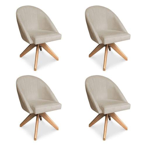Kit 04 Poltronas Cadeira Giratória Bela Veludo Base De Madeira - Pallazio Cor Rosê