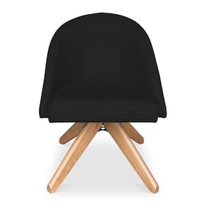 Kit 04 Poltronas Cadeira Giratória Bela Veludo Preto Base de Madeira - Pallazio