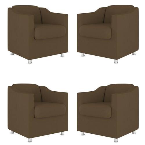 Kit 04 Poltronas Decorativas Sala De Espera Clinica Suede Cor:Marrom