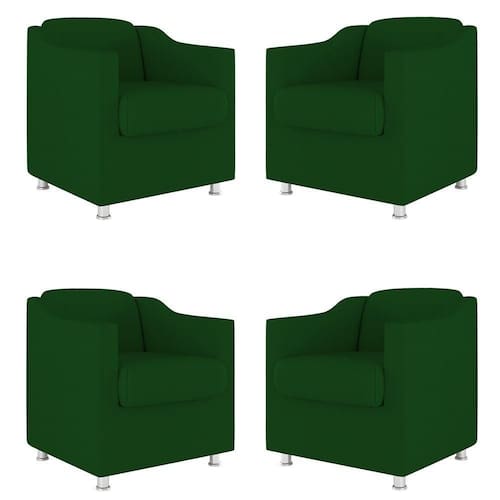 Kit 04 Poltronas Decorativas Sala De Espera Clinica Suede Cor:verde